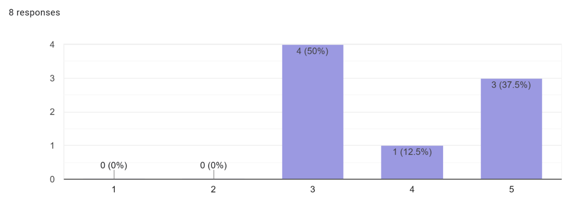 In a survey with eight responses, five students live in areas where Daylight Savings is observed and 3 in areas where it is not. When asked about their familiarity with the purpose of this practice on a scale of 1-5, they all responded within the range of 3 - 5.