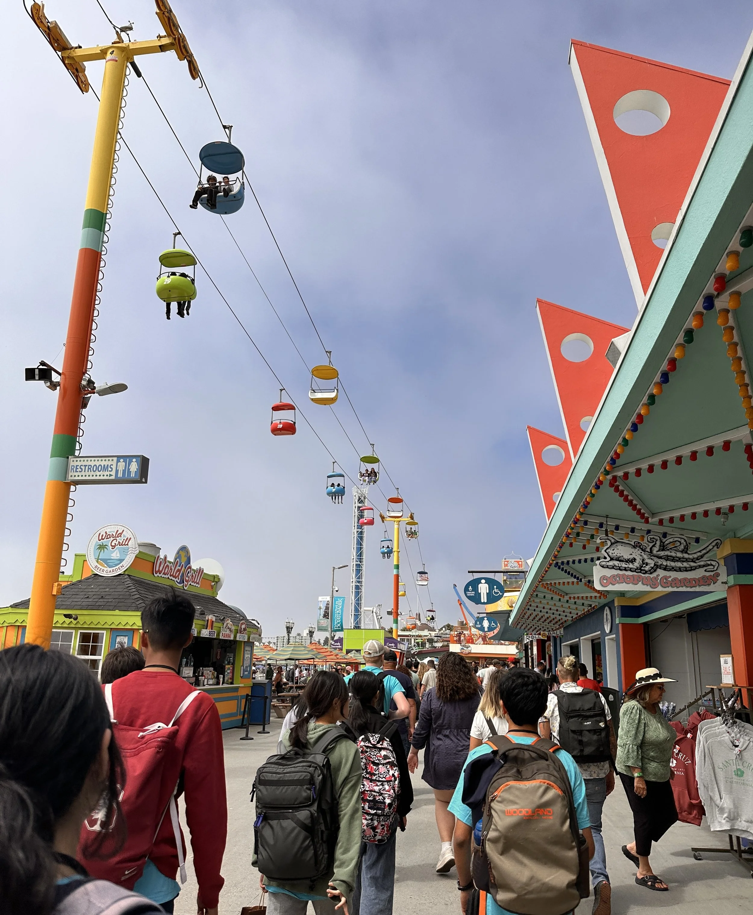 Afternoons were filled with student life events that turned the campus into a hub of activity. There were trips to the Santa Cruz Beach Boardwalk, visits to the local farmer’s market, pool days and a dance party that had everyone singing and dancing along. Students also celebrated House Pride Day, where the five houses– PiPhi, KAT, Terra, ZAP and Tridelt, showed off their spirit through games, chants and face paint.